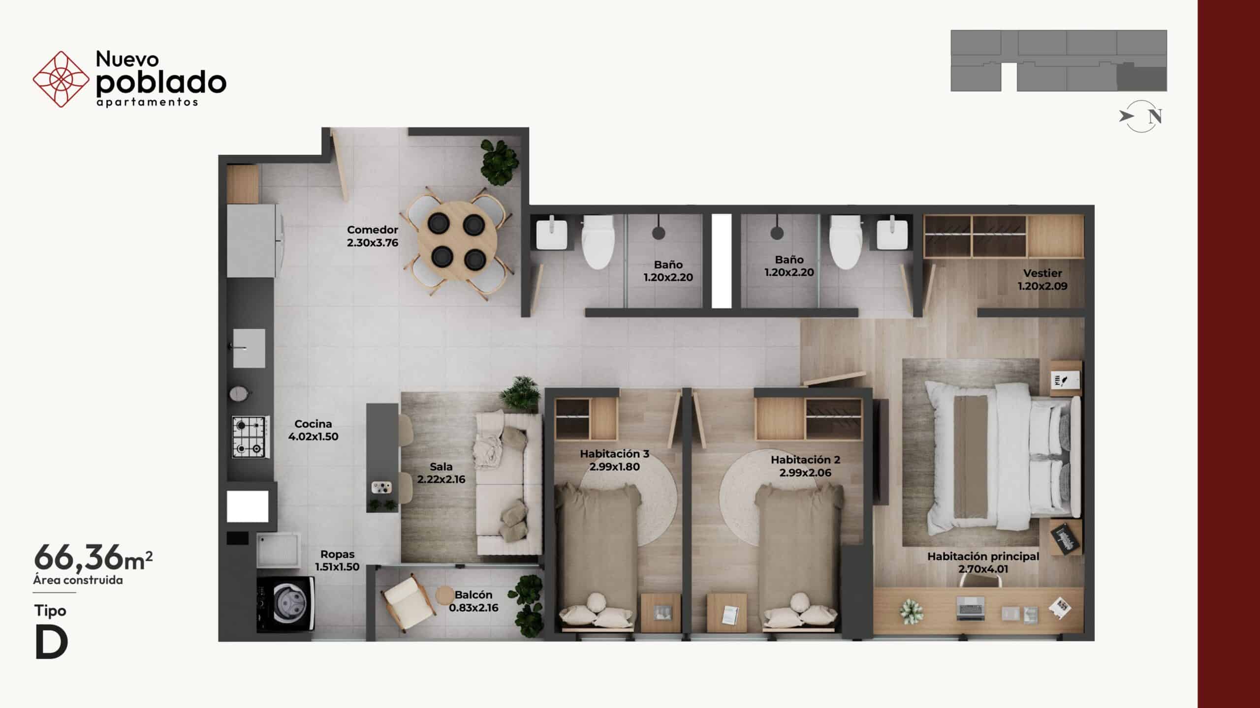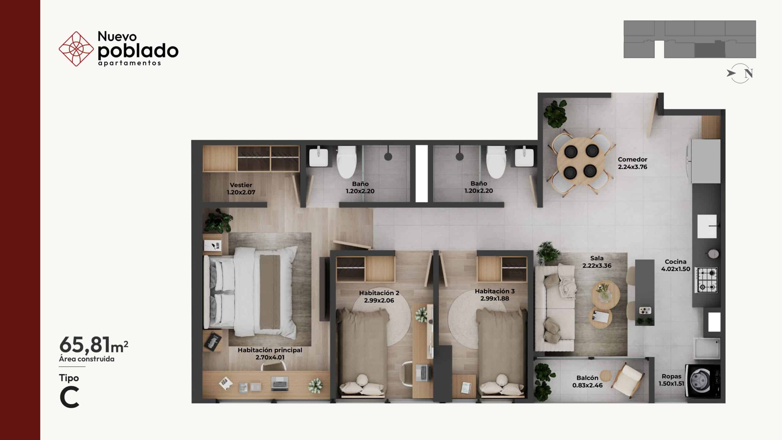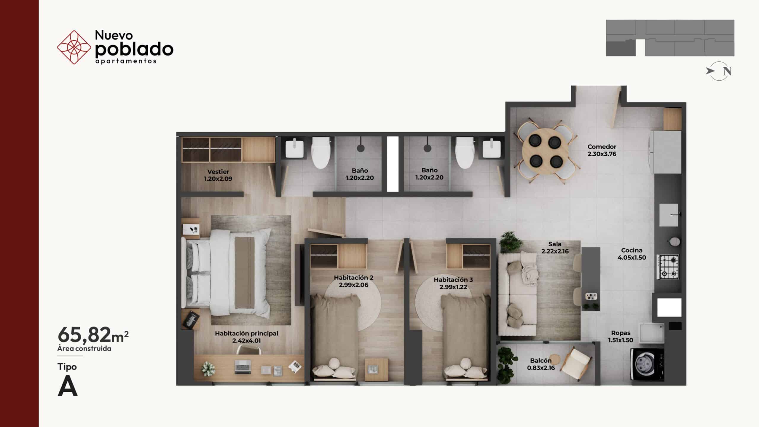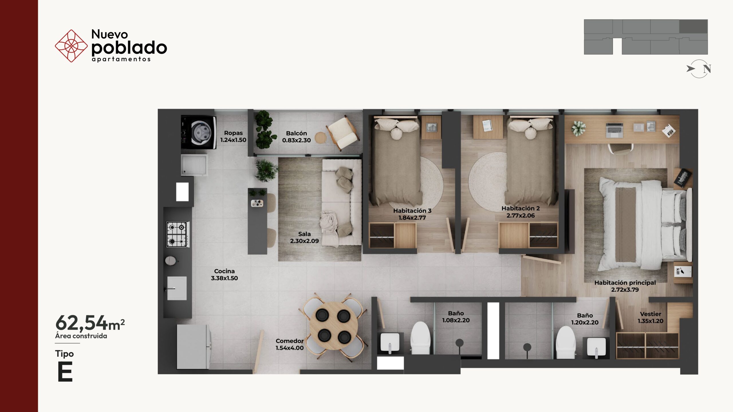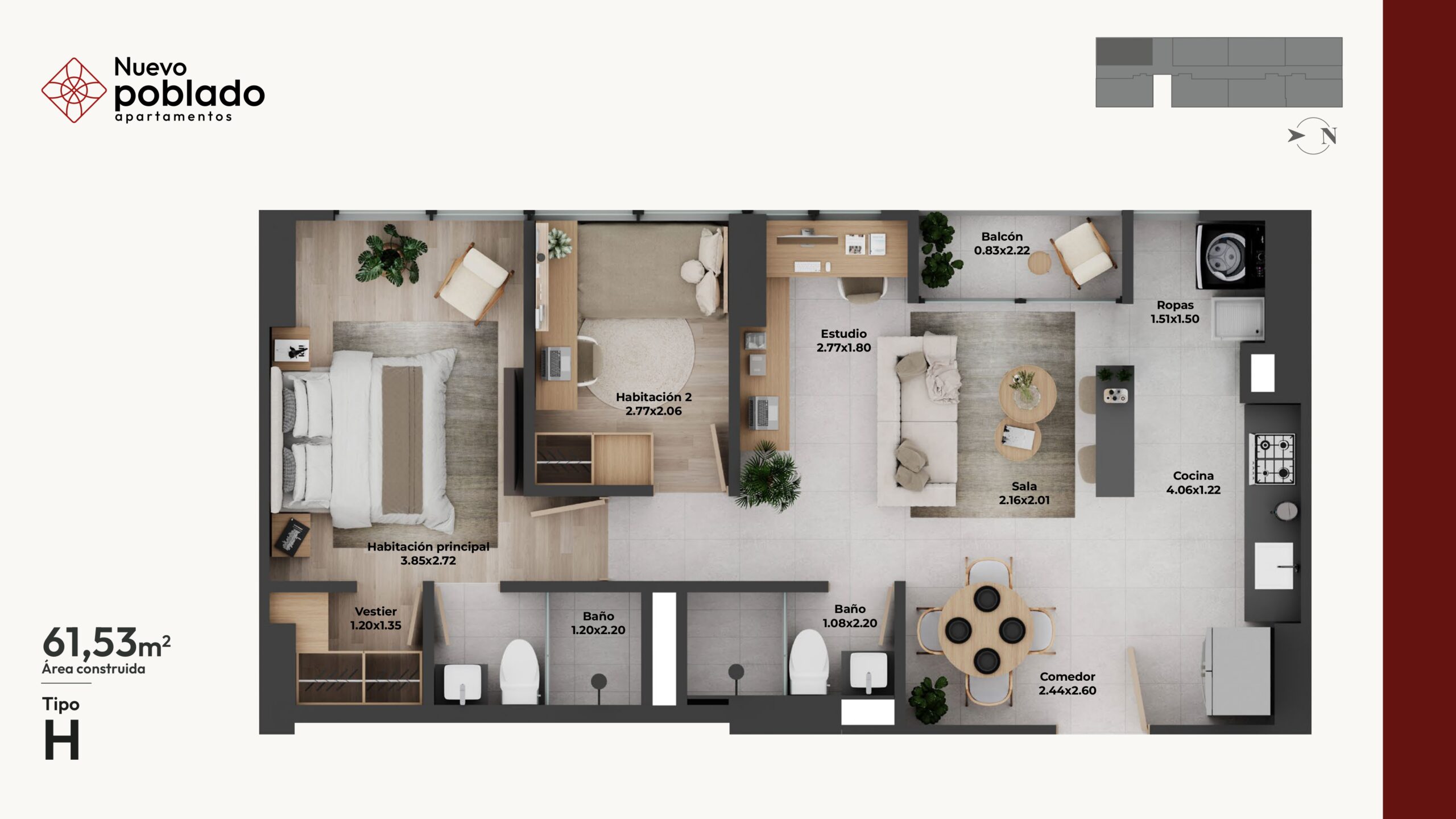 Apartamentos en Itagüí, sector las Chimeneas. Torre Baena con áreas desde 61 hasta 66 m2. Cerca de todo lo que necesitas, deja que lo bueno te rodee. Con las más completas y divertidas zonas comunes para toda la familia. Visítanos en nuestra sala de ventas y conoce el apartamento modelo.